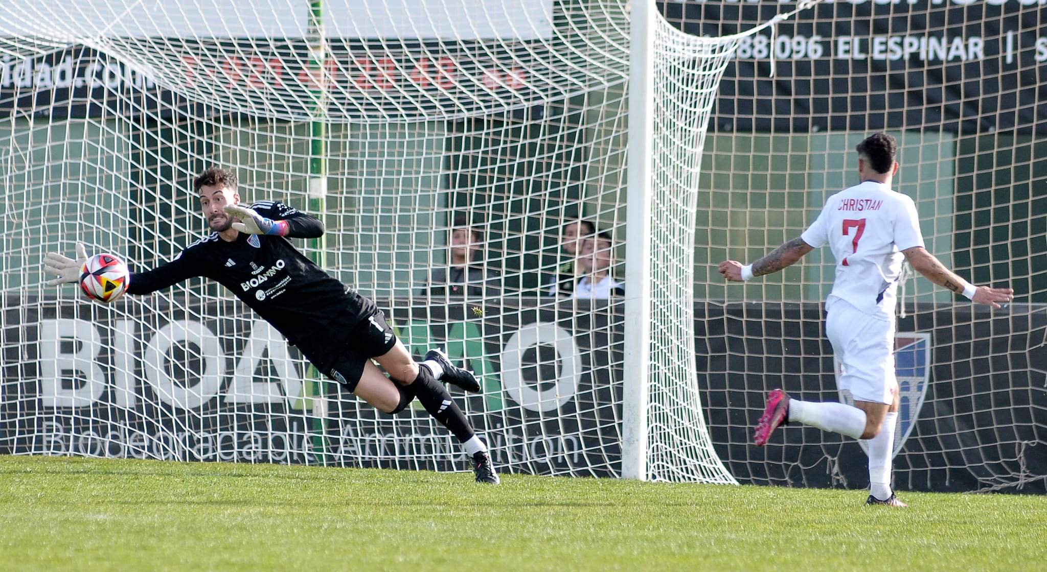 A pesar de lo que dictaba la clasificación, el Ursaria demostró ser un equipo rápido, entonado en defensa, y que ganaba bien los balones aéreos y a la espalda. Lo único que les faltó a los madrileños fue acierto de cara a puerta. Pero delante tuvieron a un enorme Carmona bajo palos, que desbarató cuatro o cinco acciones muy peligrosas, algunas de ellas en el mano a mano, otras en saques de esquina… Todo un seguro el guardameta.